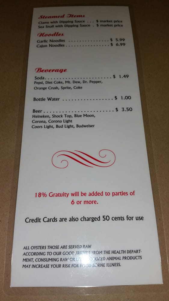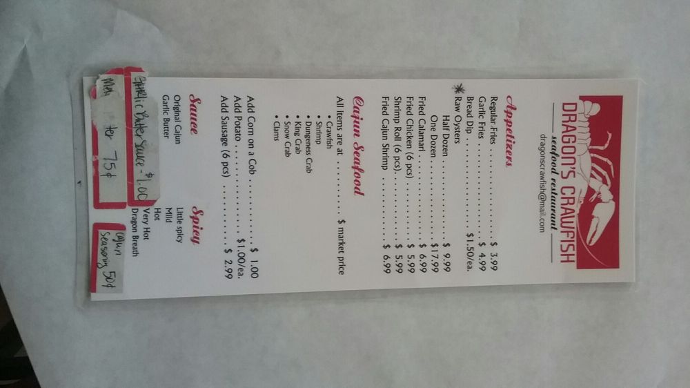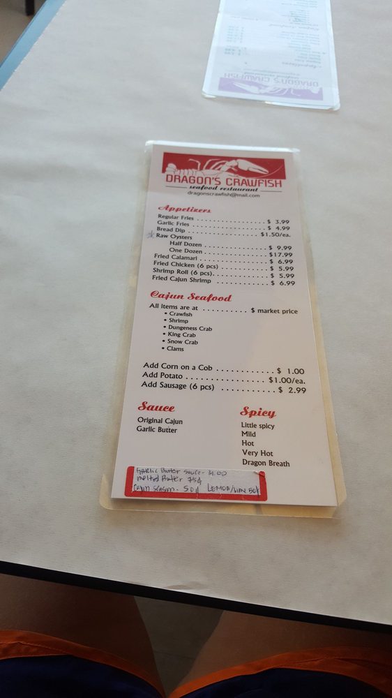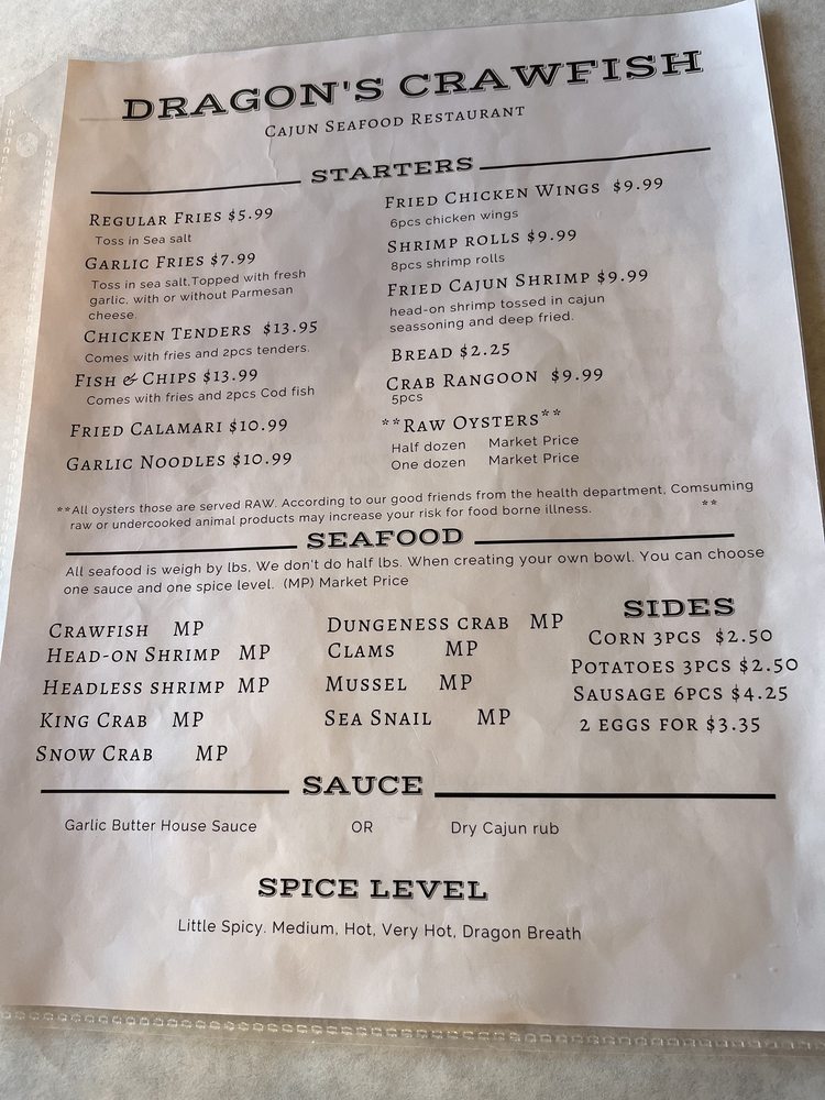 Dragon's Crawfish Menu (Update 2025)