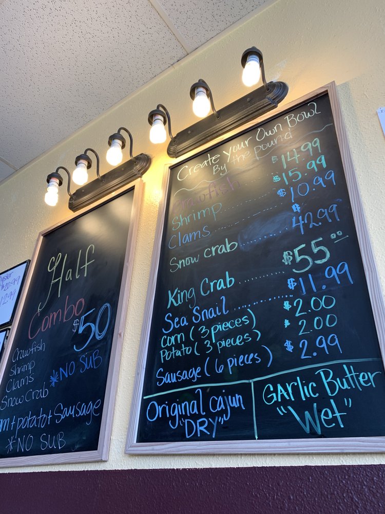 King crab with choice of Garlic Butter House Sauce or Dry Cajun Rub. Spice levels from Little Spicy to Dragon Breath.